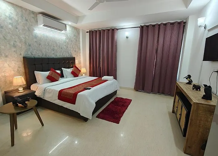 The 41 m² Divine India Service Apartment, 2 Bhk, E- 30 New Delhi is located 3.1 km from Chor Minar Stone Tower and about a 25-minute walk from Qutb Minar complex Ruins. Alongside complimentary private parking for guests with cars, the apartment offers general amenities such as currency exchange and a lift, ensuring a convenient stay.